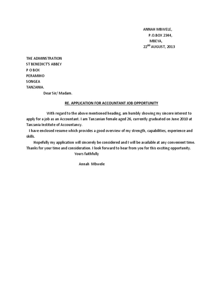 Steps to writing a good letter of employment. An application letter should be formal and tone of the letter should be respectful. What to include in your cover letter. Tanzania postal bank has a strong commitment to environmental, health and safety management. Search writing a basic cover letter. A letter of application otherwise known as a cover what is a job application letter? Cover letter examples for all types of professions and job seekers. Help writing letters, memos notes, emails. A well written job application cover letter will explain what job you are applying for and why. Please find enclosed my application for a visa. If this is an email, simply include your typed. A job application letter can impress a potential employer and set you apart from other applicants. Template, samples, covering letters for job application tanzania also format of writing an application letter.